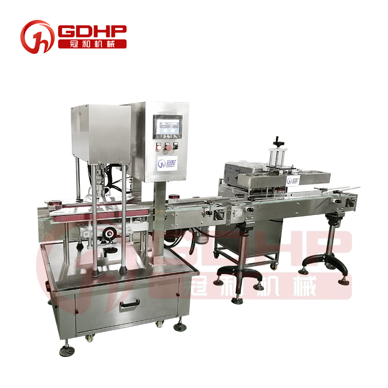 本机适用于螺纹盖的旋盖,采用磁力头旋盖,松、紧可调,不伤瓶与盖。